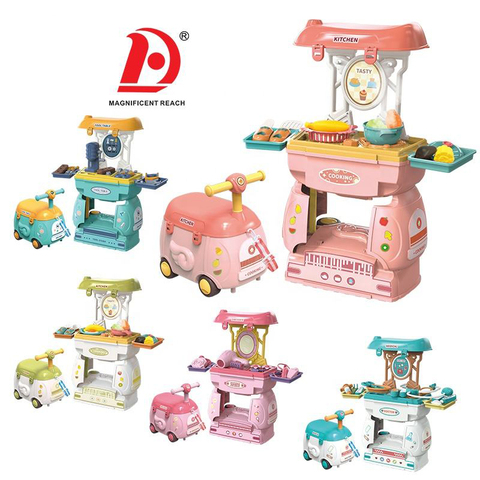 HUADA 2in1ツールドクタートイ女の子美容メイクキッチンふりおもちゃライドオンカーセット赤ちゃん就学前プレイハウスおもちゃ