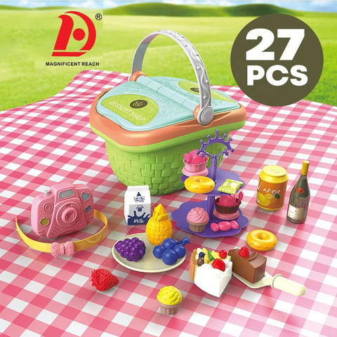 HUADAふりプレイ子供ピクニックフードデザートおもちゃキッチンバスケット収納女の子キッチンデザートピザ医者かわいいピクニックバスケットおもちゃ