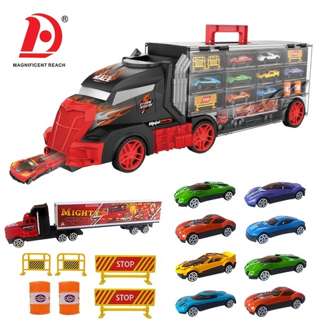 HUADA ชุดรถเหล็กหล่อขนาดเล็กสำหรับ2023เด็ก, รถของเล่นรถบรรทุกของเล่นพลาสติกแรงเสียดทานสำหรับขนส่งรถ